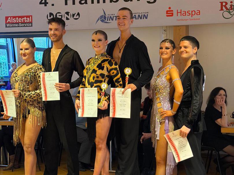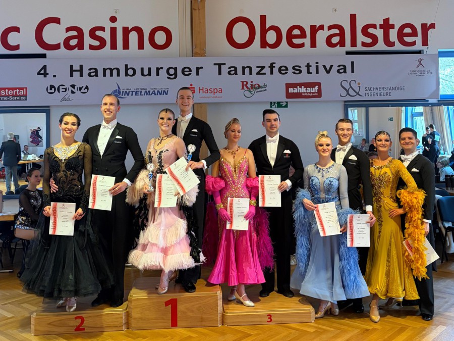 Hamburg 14./15.03.2026. Beim 4. Hamburger Tanzfestival gelang Hannes & Skady alles. An zwei Tagen gingen Sie in insgesamt 3 Turnieren an den Start. Sie waren am Samstag einfach nicht zu schlagen und krönten ihn einem Doppelerfolg. Platz 1 im Standard Turnier der Hauptgruppe A und Platz 1 im Turnier der lateinamerikanischen Tänzen in der Hauptgruppe A. Auch am Sonntag zeigten sie beeindruckende Leistungen und erreichten den 2. Platz in der Hauptgruppe A Standard.